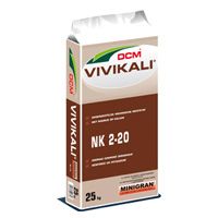 Dcm Vivikali is een organische meststof met hoog kaliumgehalte (20 % K2O). Langzame, maar continue vrijstelling. Geen risico op zoutschokken en betere benutting van kalium. Om sier- en boomkwekerijplanten af te harden, wanneer een stikstofgift niet meer nodig is. Onmisbaar bij de teelt van vrucht-, wortel- en knolgewassen voor dikke vruchten.