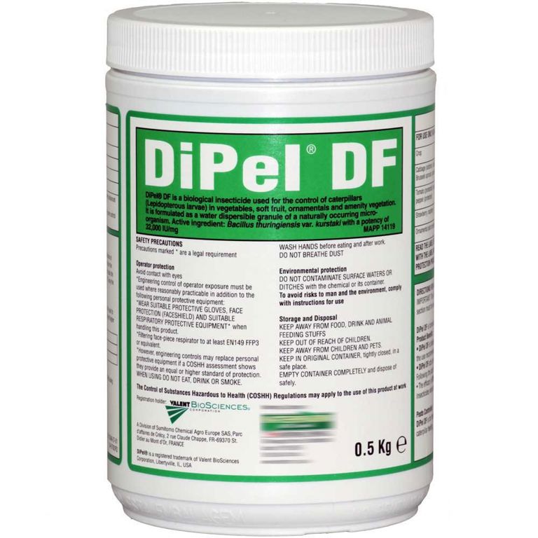 DiPel DF is een biologisch insecticide gebaseerd op Bacillus thuringiensis (Bt), dat speciaal is ontwikkeld voor de bestrijding van rupsen in verschillende gewassen.