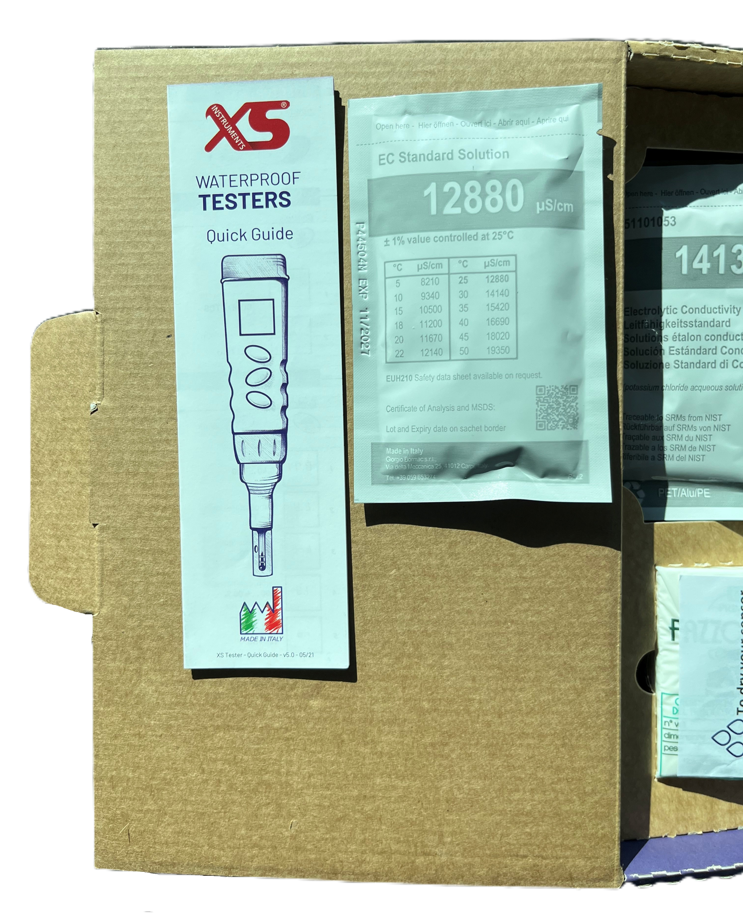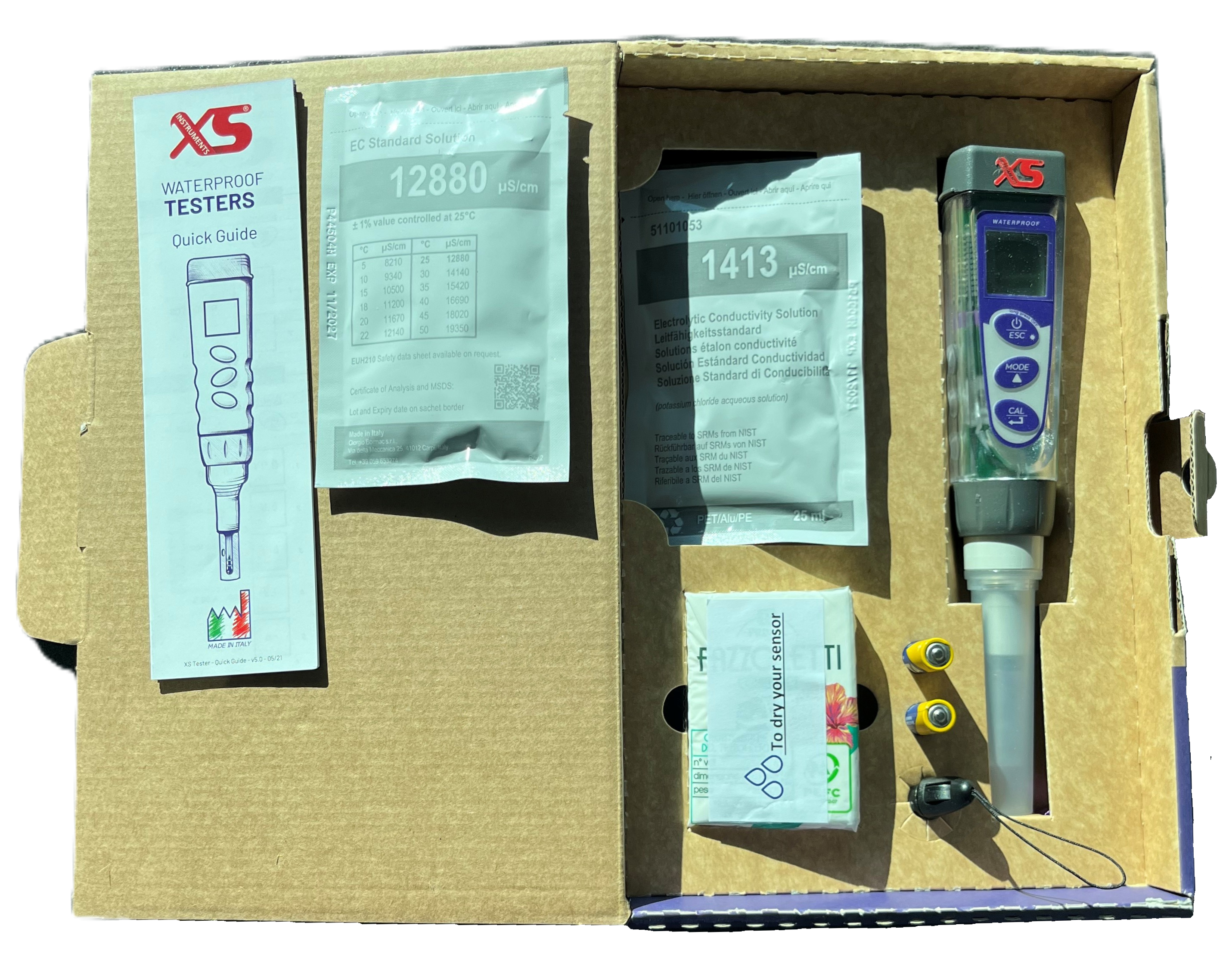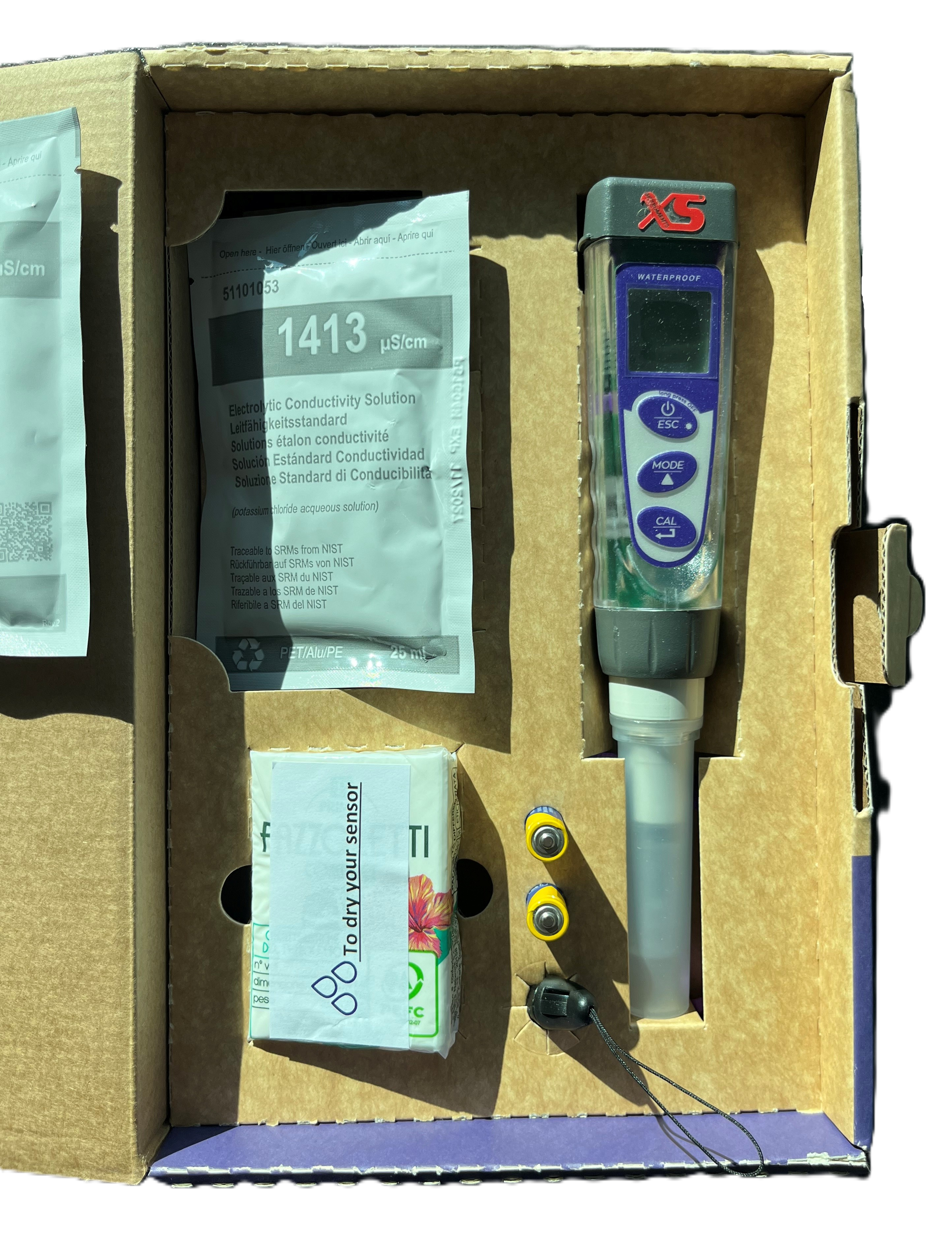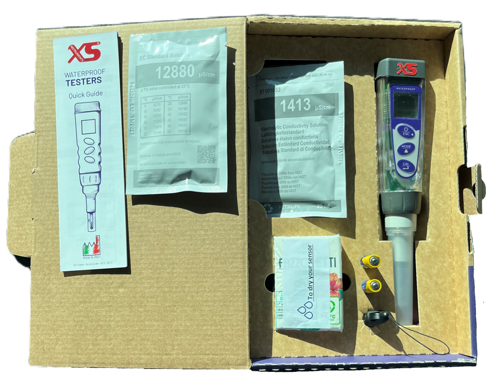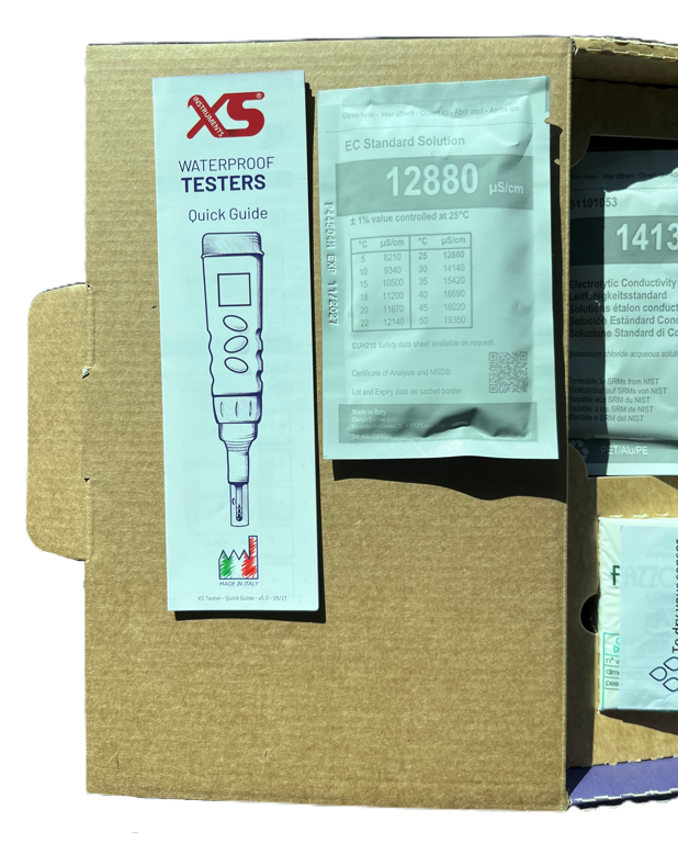 - Kalibratieknop op 3 punten met standaard 3 waarden tussen 84, 1413µS en 12,88 mS mS