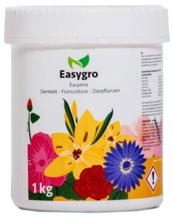 Easymix sierteelt is een natriumarme sporenmix welke specifiek is samengesteld voor de sierteeltgewassen. Deze samenstelling met gechelateerde spoorelementen zorgt ervoor dat ieder element optimaal opneembaar is door het gewas. Hierbij dient er rekening gehouden te worden met de pH van het voedingswater die maximaal 7 mag zijn. Een hogere pH heeft een negatief effect op de stabiliteit van sommige elementen in combinatie met het chelaat.
