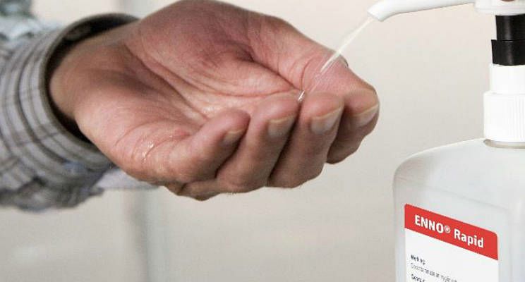 - Wrijf ongeveer 3 ml Enno Rapid zolang op de handen, tot dat de oplossing verdampt is (ongeveer 1 minuut).