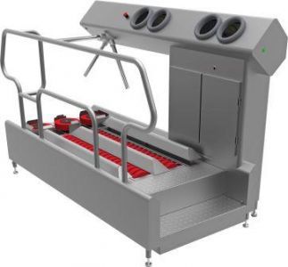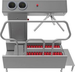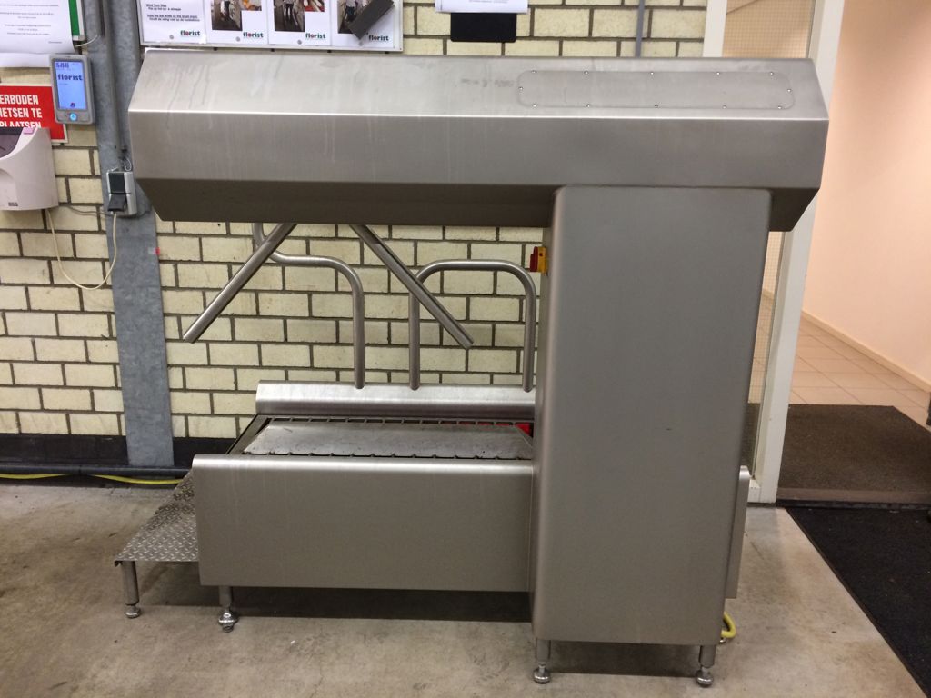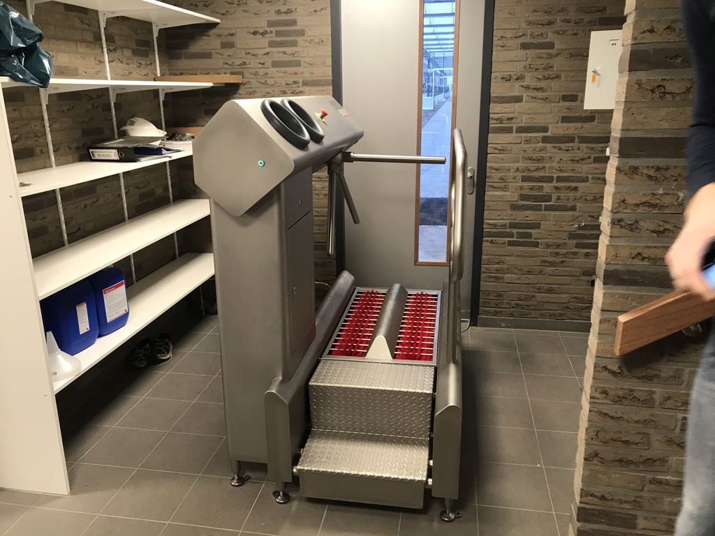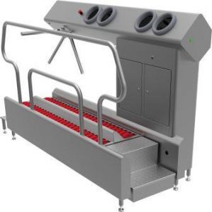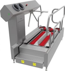 Dit hygiënestation zorgt voor de meest optimale hygiëne van de zolen en de handen. Voor de zolenreiniging wordt gebruik gemaakt van kwaliteitsvolle en uiterst duurzame borstels die op een efficiënte manier reinigen. De handen worden gedesinfecteerd wanneer beide handen tegelijkertijd gededecteerd worden door de sensoren in de handopeningen. Na het beëindigen van het volledige proces (zolenreiniging en handendesinfectie) wordt de tourniquet (zwaaiarm) vrijgegeven.