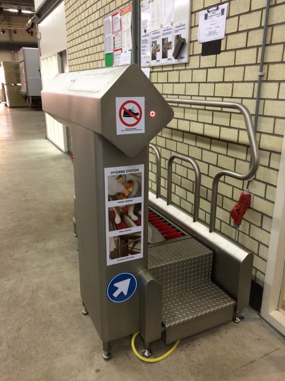 Het URK hygiënestation is ontworpen voor een gecontroleerde passage van de werknemers bij het binnenkomen en verlaten van de productieruimte(s). Voor de meest optimale hygiëne te waarborgen worden deze stations geplaatst in een zogenaamde hygiënesluis, bij voorkeur aan de ingang van de productiehal.