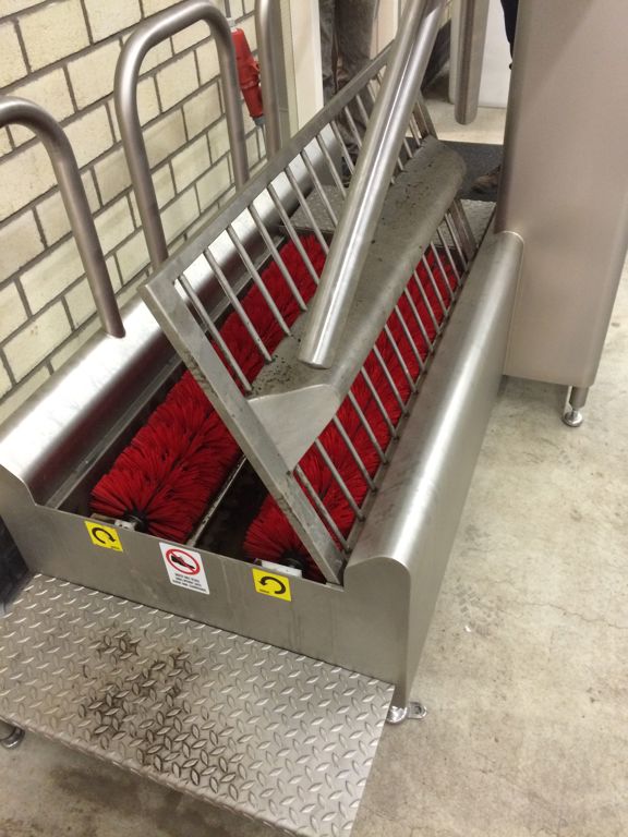 - Na het beëindigen van het volledige proces (zolenreiniging en handendesinfectie) wordt de tourniquet (zwaaiarm) vrijgegeven.