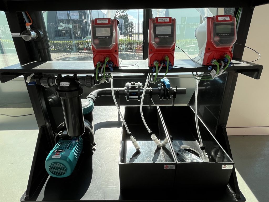 - Zuur en loog doseerpomp en lekbakken