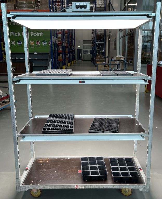 Deense kar voorzien van 1 armatuur met zonlicht spectrum. Plaat voorzien van LED plaat met zonlicht spectrum 60x120 80W dimbaar 0-10V.