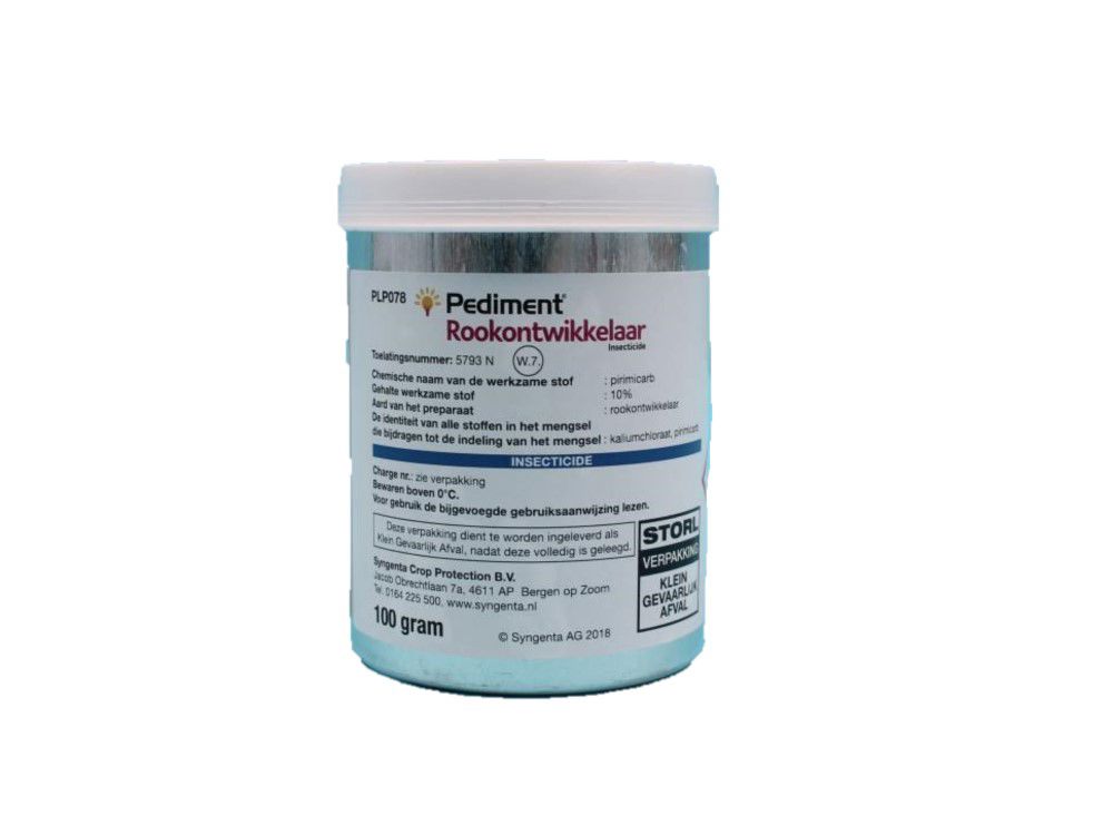 Pediment werkt niet alleen via direct contact, maar ook door damp- en translaminaire werking, waardoor ook verborgen luizen effectief bestreden worden. Het middel is beschikbaar als rookontwikkelaar en als niet-stuivende spuitkorrel.