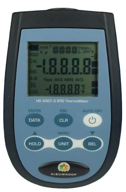 De TP1110 is een draagbaar instrument met een groot LCD display. De temperatuur wordt gemeten d.m.v. Pt100 of Pt1000 dompel, insteek, oppervlakte of lucht sensoren. De sensor kan zijn een; Pt100 3 of 4 draads, Pt1000.