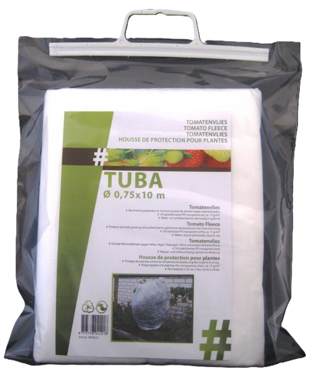 Het tomatenvlies Tuba wordt veel gebruikt om tomaten-, kuip- en potplanten te beschermen tegen weersinvloeden, zoals kou, hagel en harde regens. Deze hoezen zijn gemaakt van een zachte polypropyleen vlies en beschadigen de plant dus niet.