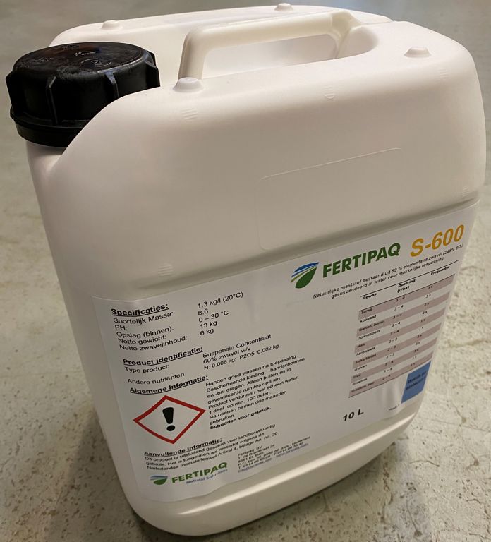 Productinformatie "Vloeibaar zwavel S-600 10 liter"