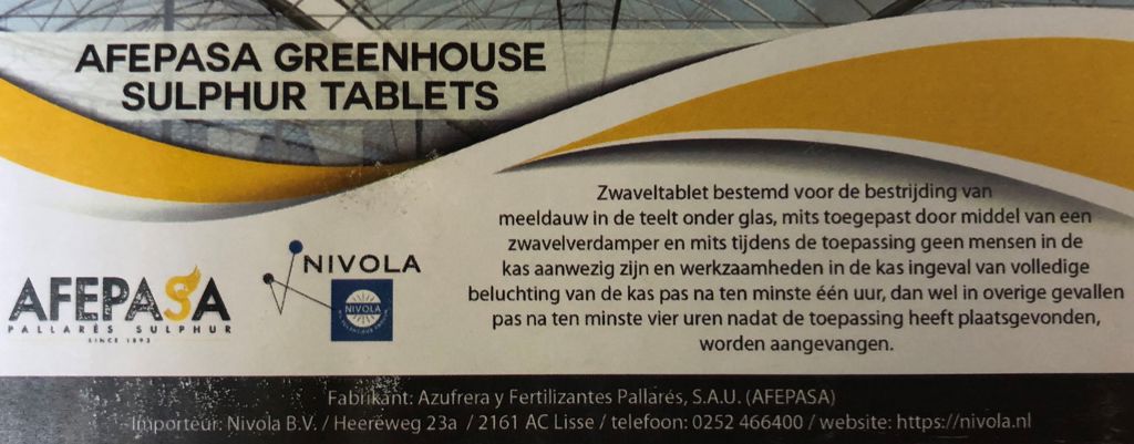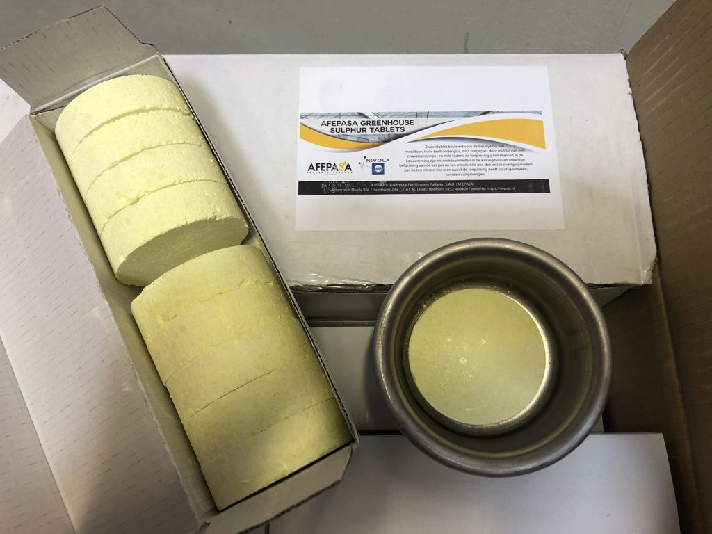 Fungicide, zwavel. De zwaveltabletten zijn een klassiek fungicide op basis van zwavel, bedoeld voor de preventieve en bestrijdende aanpak van schimmelziekten zoals meeldauw en roest in diverse gewassen. De tabletten worden langzaam opgelost en geven gedurende langere tijd zwavel af, waardoor een beschermende laag ontstaat op planten en bloemen. Zwavel is een fysisch-chemisch middel dat schimmels remt zonder opgenomen te worden door de plant, waardoor het veilig is voor het gewas bij correct gebruik. De tabletten zijn makkelijk in gebruik en geschikt voor toepassing in bijvoorbeeld fruitteelt, groentegewassen en sierplanten.
