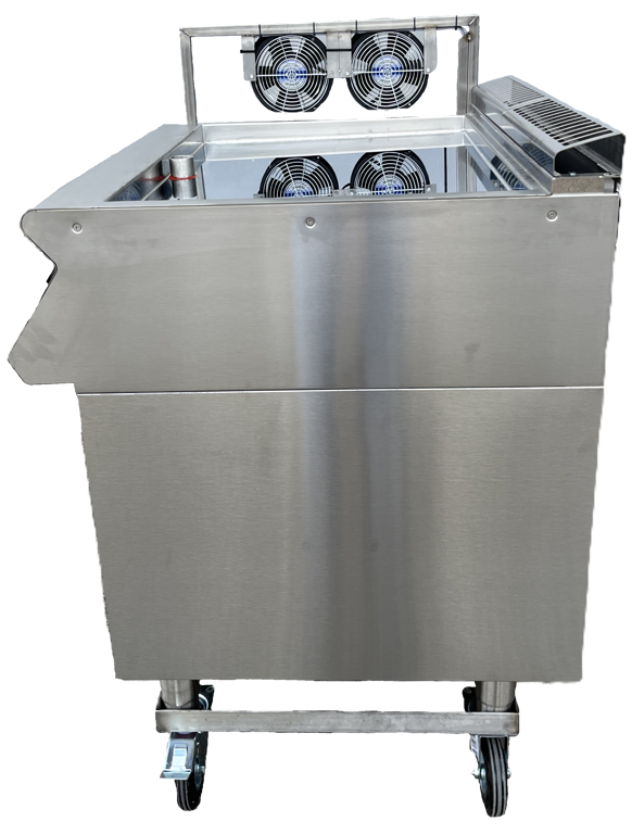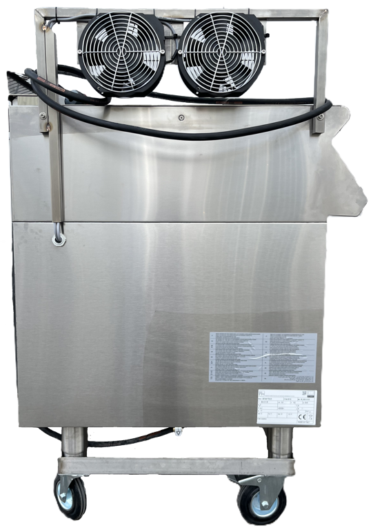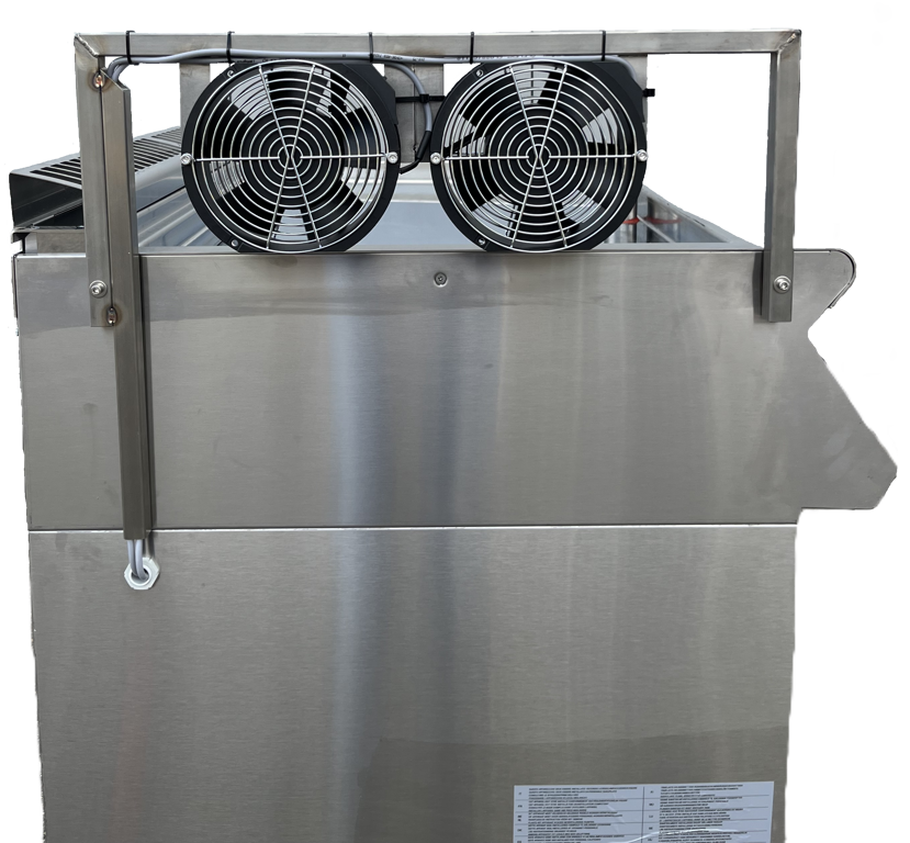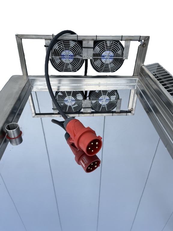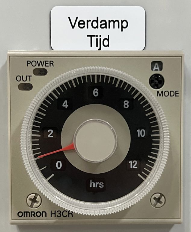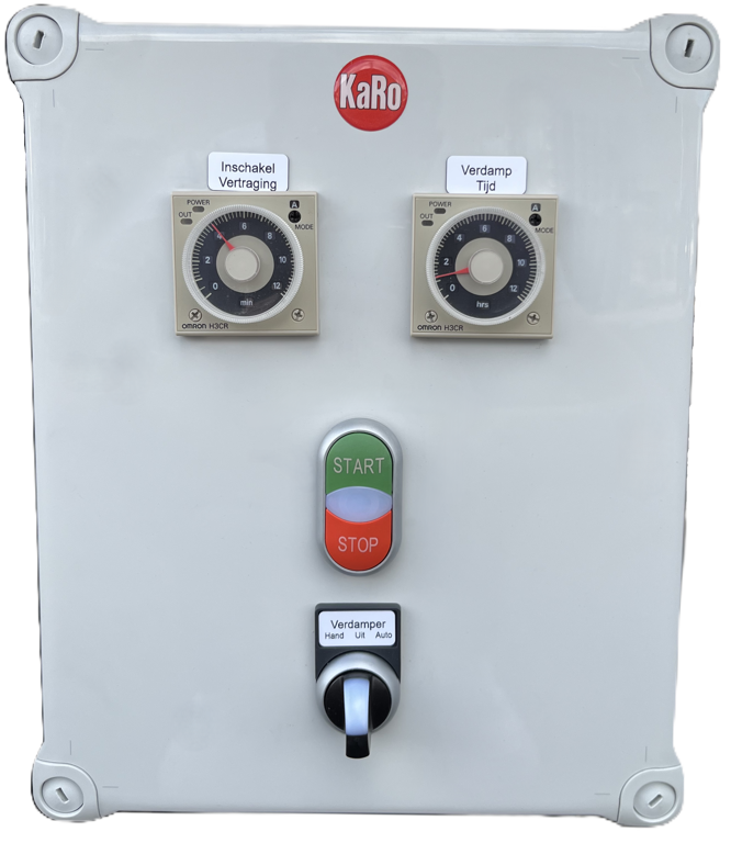 Voorzien van ondersteuning ventilatoren en een schakelkast met startpauze tijdklok en verdamp tijdklok.