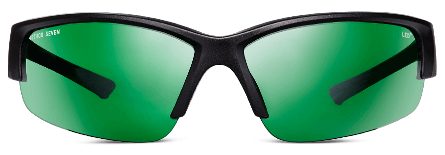 De Classic polymer lenzen kleurenbalans blurple (blauw + paars) of magenta spectrum LED verlichting met 100% UV bescherming. Een flash silver lens coating attenueert felle kweekruimte verlichting. Voldoet aan of overtreft CSAZ94 & ANSI Z87+S normen. Niet te gebruiken onder volledige spectrum LED verlichting.