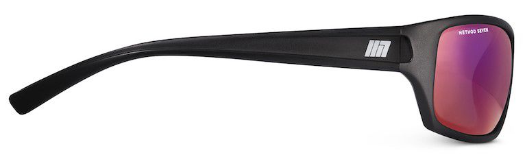 Paarse bril met heel zwart montuur aan bovenzijde 100% UV-bescherming. Infrarood warmtereductie houdt de ogen koel en vochtig plus een antireflecterende coating vermindert schittering. Ontworpen voor LED- en CMH-verlichting met volledig spectrum. CMH = Ceramic Metal Halide. Zwart montuur en paarse glazen.