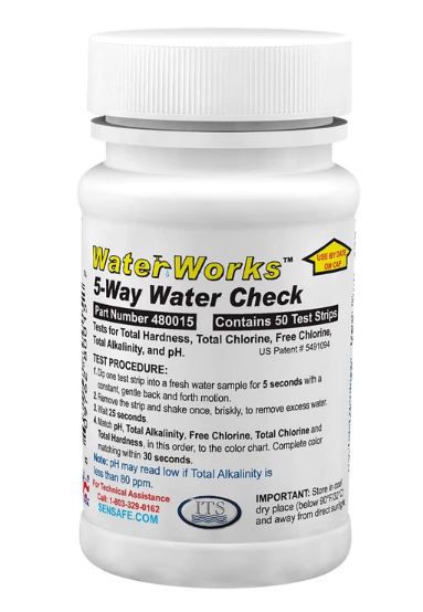 Deze eenvoudige 5-weg kleurteststrip, van ons WaterWorks™ merk, maakt snelle en nauwkeurige testing mogelijk van Free Chlorine, Total Chlorine, pH, Total Alkalinity en Total Hardness in water. Het is ontworpen met vijf aparte testpads op dezelfde strip. Het is een eenvoudige dip- en lees-teststrip met een nauwkeurige kleurkaart op de achterkant van de fles en de resultaten worden binnen 30 seconden weergegeven. Deze breed inzetbare strip kan testen op deze parameters in water in verschillende industrieën en is ideaal voor het controleren van je drinkwater, het controleren van bronwater voor het brouwen van bier en algemene screening van water om de meest voorkomende parameters te verkrijgen.