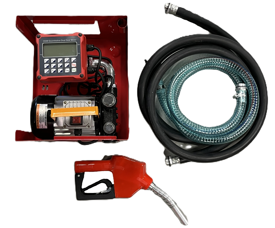 Transfer pomp 230 V voor diesel met automatisch pistool en digitale meter.
