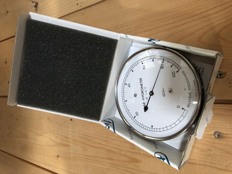 Nauwkeurige vochtmeter voor het meten van de relatieve vochtigheid. Analoge weergave van de luchtvochtigheid met deze klassieke vochtmeter. De hygrometer is voorzien van natuurlijk haar dat bijzonder gevoelig is voor vocht, hierdoor wordt de relatieve vochtigheid nauwkeurig gemeten.