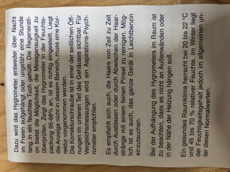 De vochtmeter regenereert zichzelf indien de luchtvochtigheid wat hoger is. Als de vochtmeter binnen wordt gebruikt en de luchtvochtigheid is voortdurend laag, dan wordt aanbevolen de vochtmeter eens per 2-3 weken te regeneren. Dit kan men doen door de vochtmeter een uurtje buiten te leggen bij een hogere luchtvochtigheid. De vochtmeter kan ook gedurende een uur in bijvoorbeeld een natte theedoek worden gewikkeld. U bent verzekerd van nauwkeurige analoge vochtmetingen!