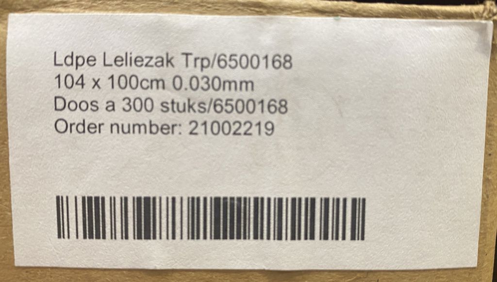 Productinformatie "leliekratzak 104x100 30mu 300/doos ldpe"