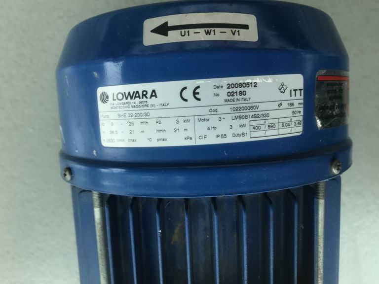 Productinformatie "pomp Lowara SHE 32-200/30/P 3kW 400V"