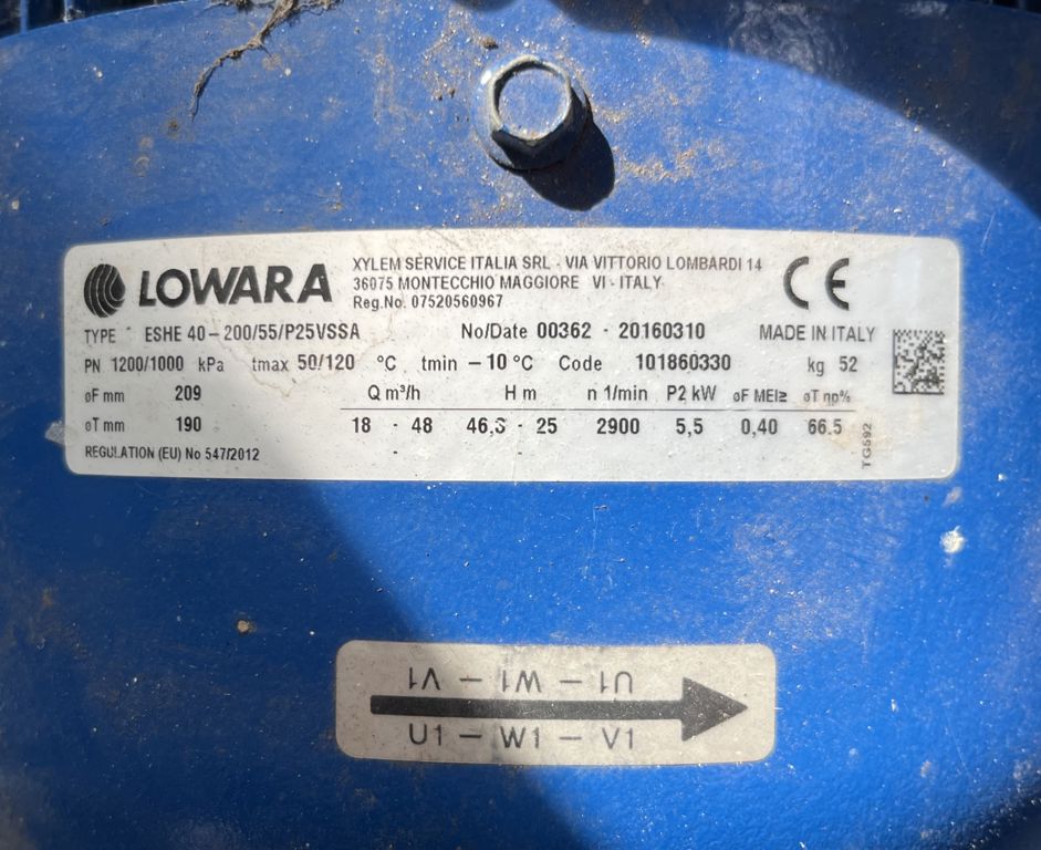 Productinformatie "pomp Lowara SHE 40-200/55/P 5,5kW 400V"