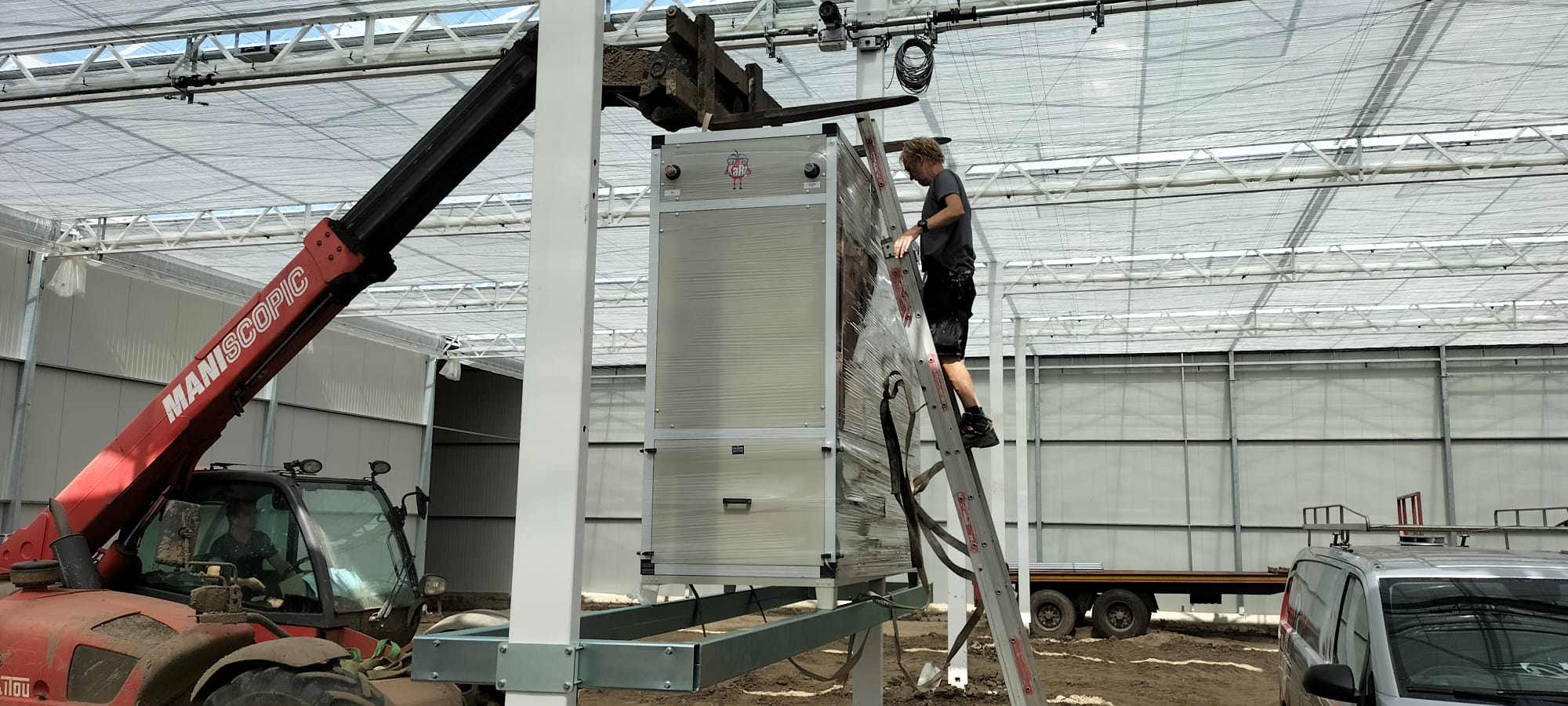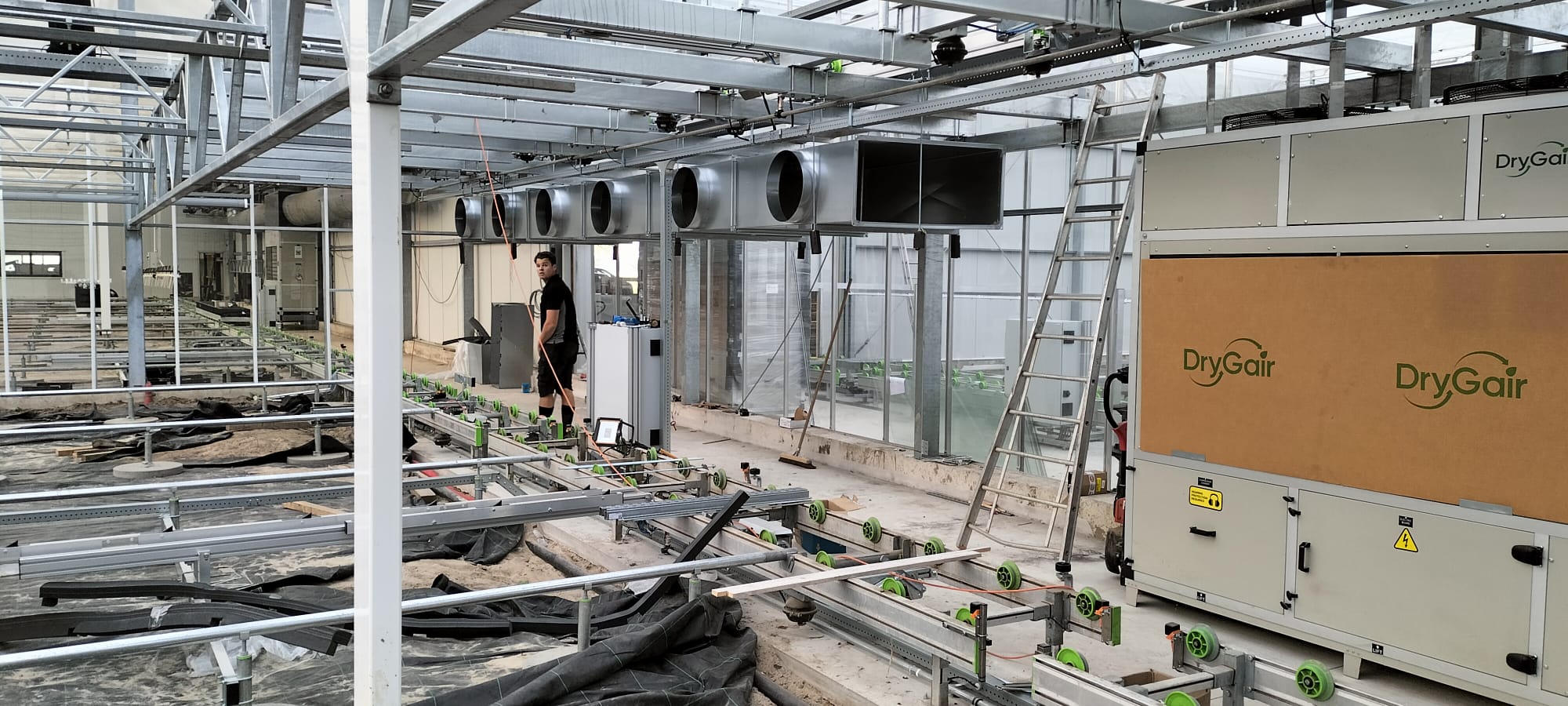 ✔ DryGairs met kanalen en slurven: Klimaatbeheersing is essentieel in de kas. In de uitbreiding van de kas hebben we drie DryGairs met heaterblokken, kanalen en slurven geplaatst. De binnenkas met dubbele teeltlaag is voorzien van twee DryGair ontvochtigers, terwijl in de plukkas nog een DryGair ontvochtiger met Heating & Cooling is geïnstalleerd. Dit helpt niet alleen bij het voorkomen van ziektes, maar ook bij het creëren van een stabiel en gezond kasklimaat.