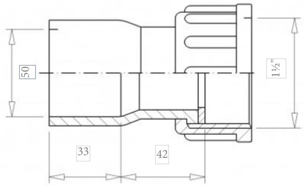 Productinformatie "pvc 2/3 kopp lang 50mm x 1½"bi 10bar"