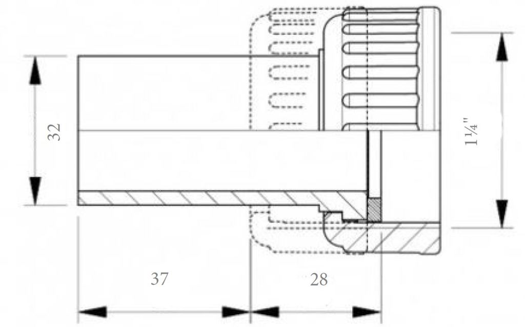 Productinformatie "pvc 2/3 kopp recht 32 x 1¼"bi 16bar"