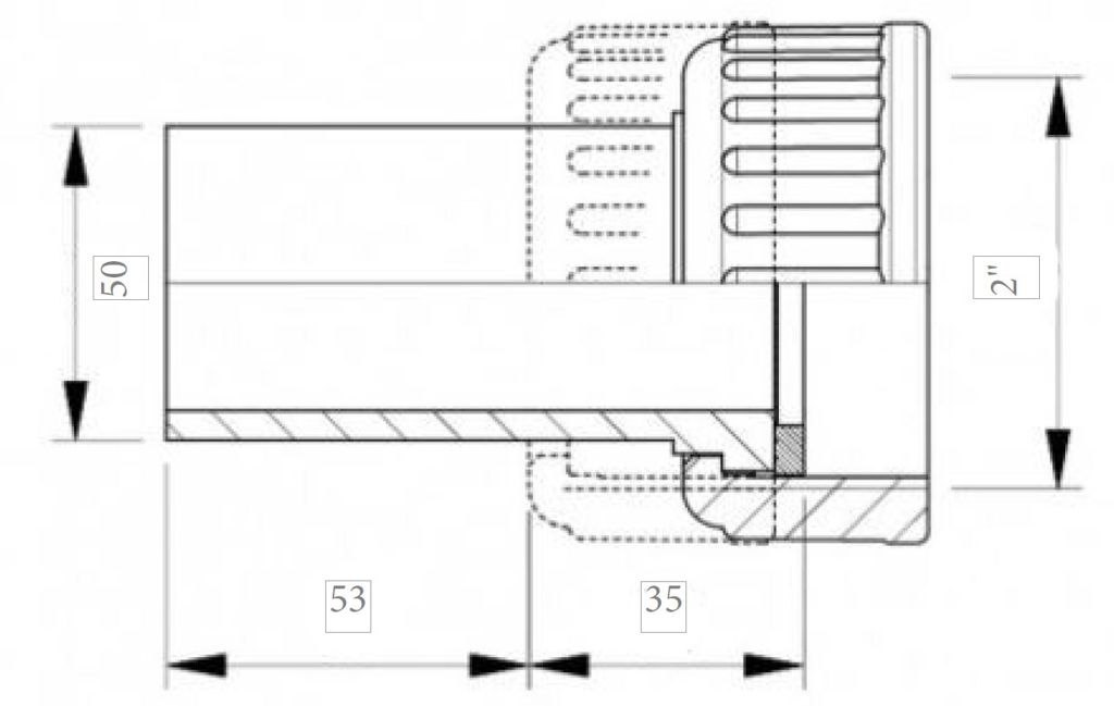 Productinformatie "pvc 2/3 kopp recht 50 x 2"bi 16bar"